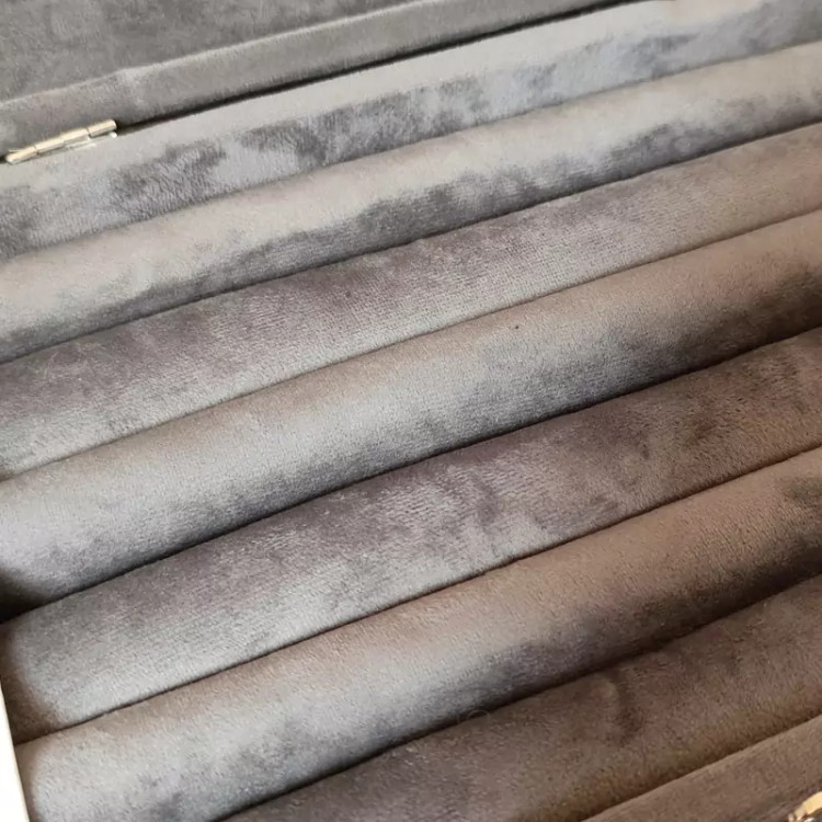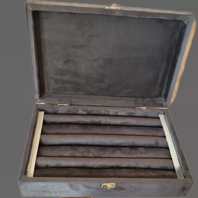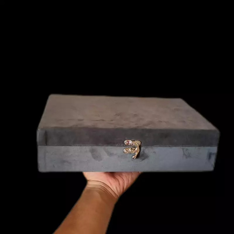 سینی انگشتری و النگویی درب دار رنگ طوسی شارژ شد✨♥ ➖➖➖➖➖➖➖➖➖ 🎀🎀مشخصات 🎀🎀 ✔️✔️ قابل سایز بندی ✔️✔️ 20ارتفاع✔ 29عرض✔ 🎀🎀رنگ بندی🎀🎀 طوسی تیره🩶 جنس تمام مخمل مناسب برای دستبند های النگویی و انگشتری یک کار درب داره و قفل دار با کیفیت درجه یک برای مغازه داران محترم 😊 ➖➖➖➖➖➖➖➖