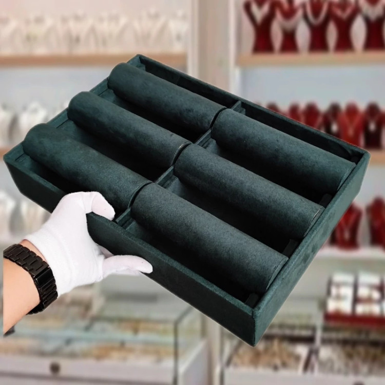 استند النگو بدلیجات و جواهرات رومیزی رنگ سبز مخمل طرح دار