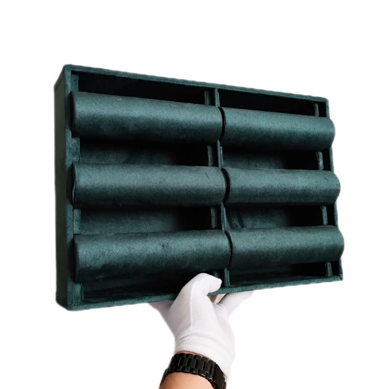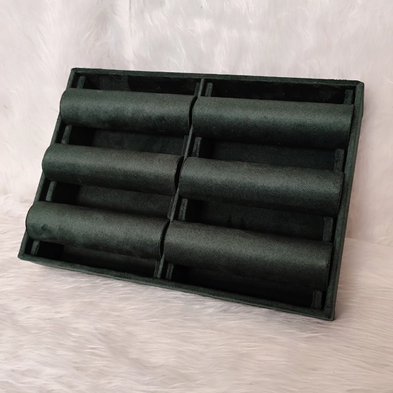 استند النگو بدلیجات و جواهرات رومیزی رنگ سبز مخمل طرح دار
