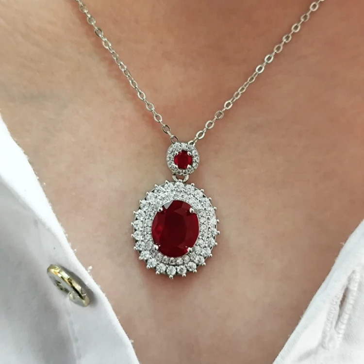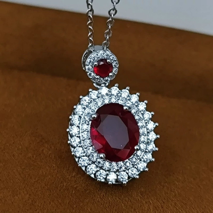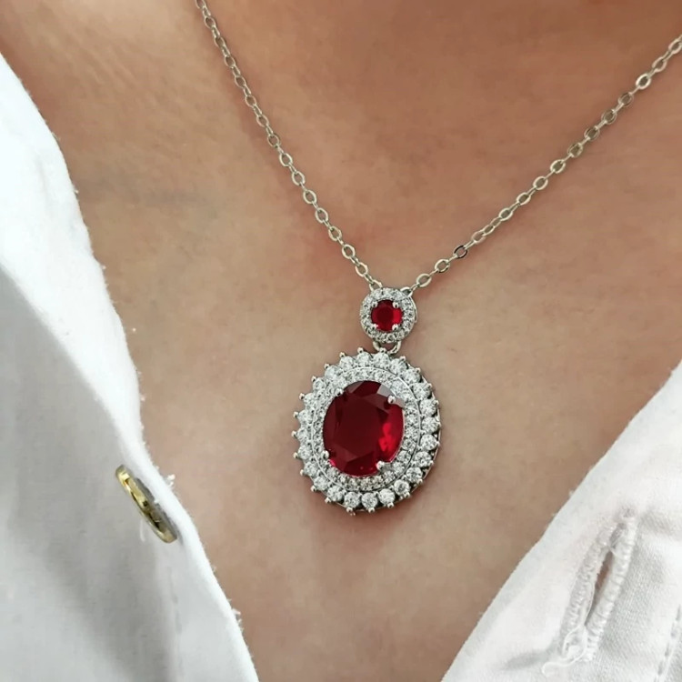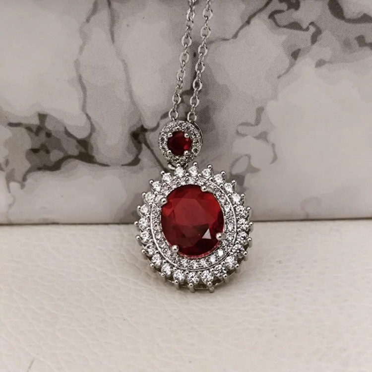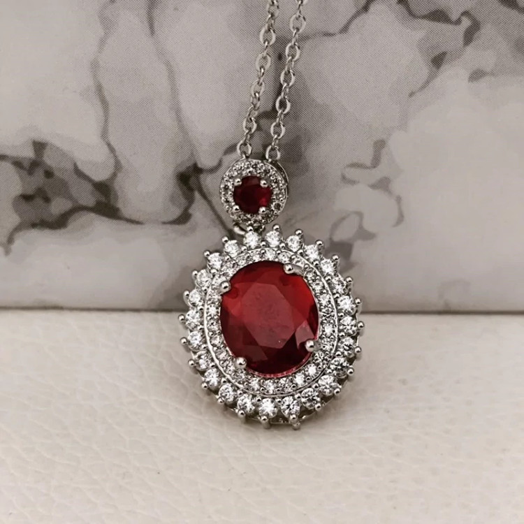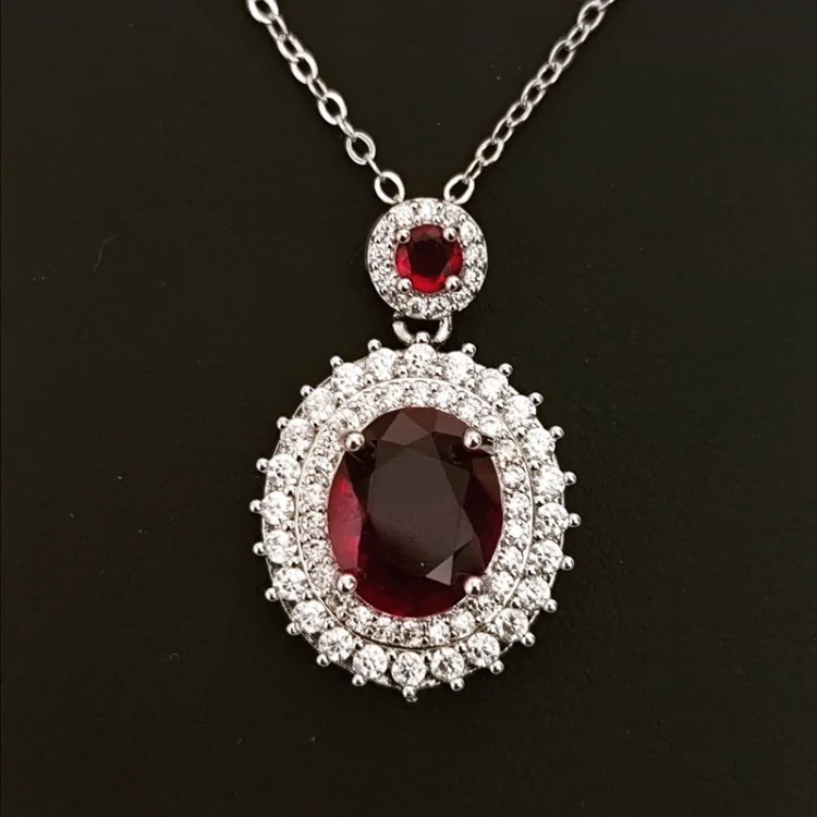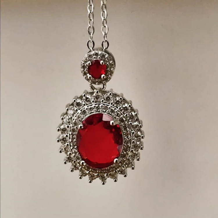 گردنبند نگین زرشکی