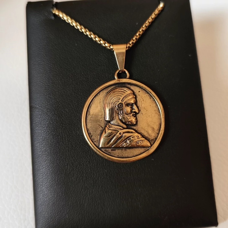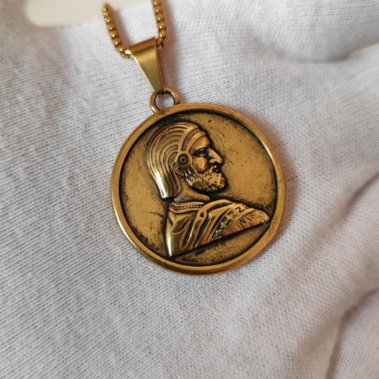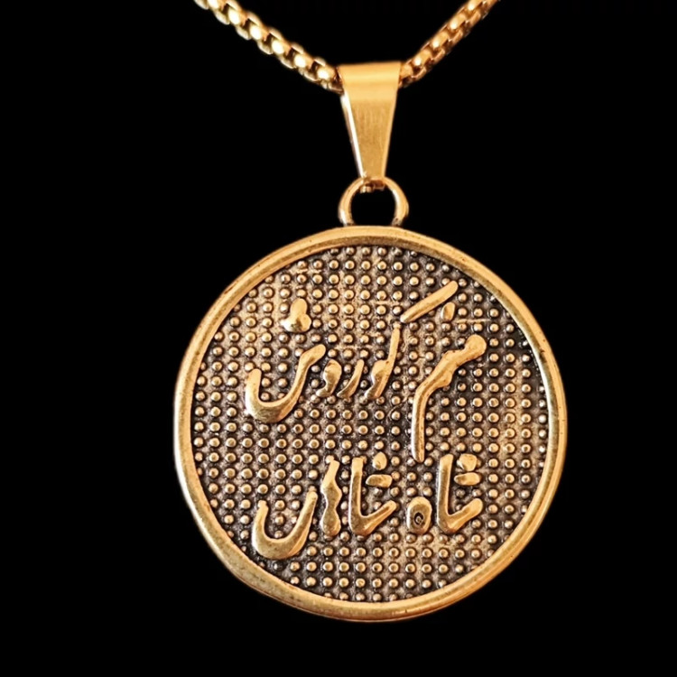 جنس پلاک و زنجیر استیل هست در طرف اصلی گردنبند چهره کوروش بزرگ به صورت واضح حک شده و طرف دیگه یعنی پشت پلاک متن منم کوروش شاه شاهان حک شده 😍