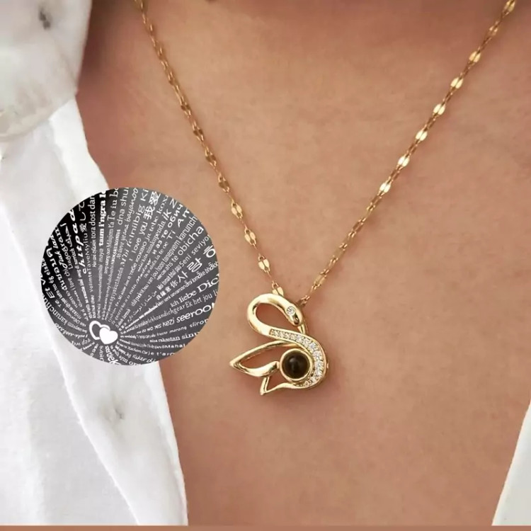 گردنبند دوستت دارم به صد زبان دنیا طرح قو طلایی