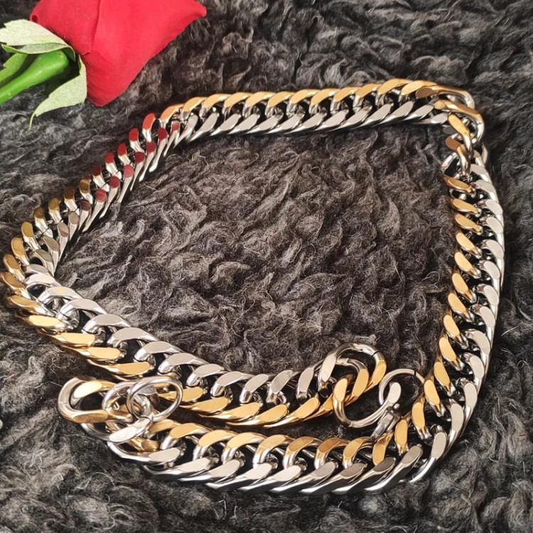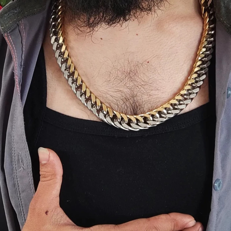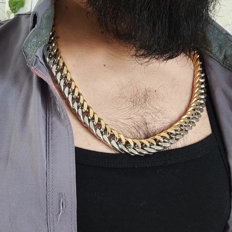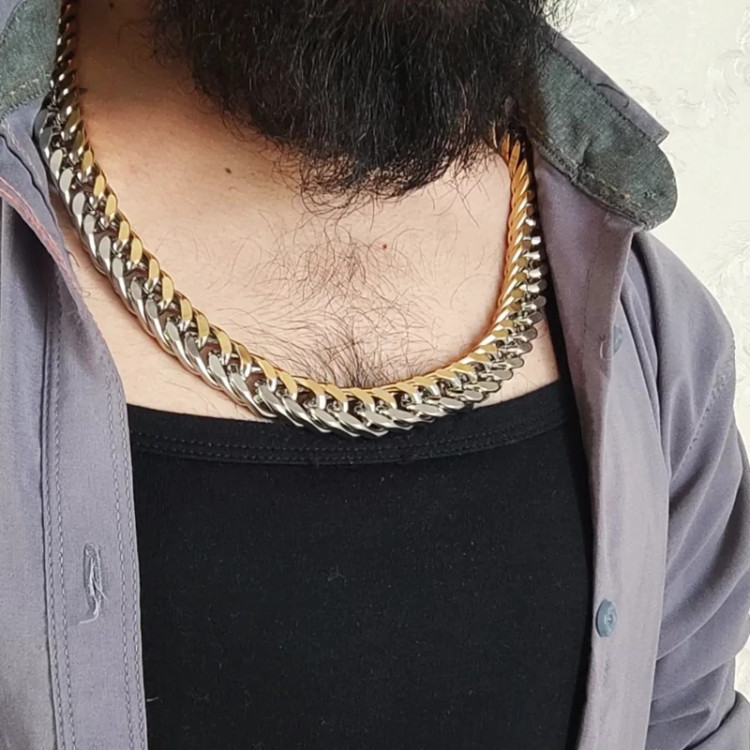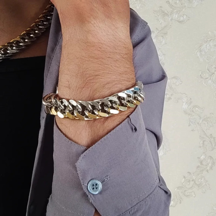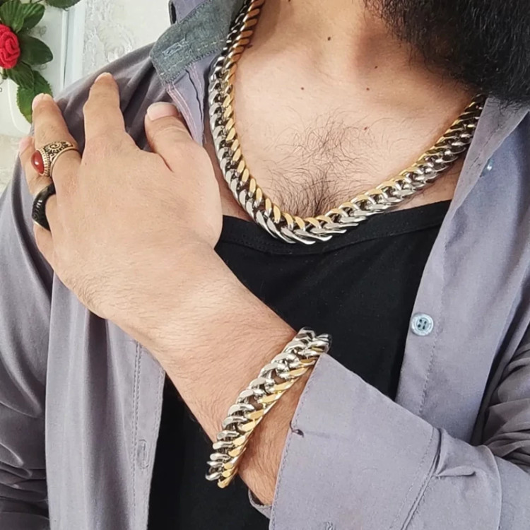 ست دستبند و گردنبند کارتیر استیل دو رنگ مردانه 15 میل