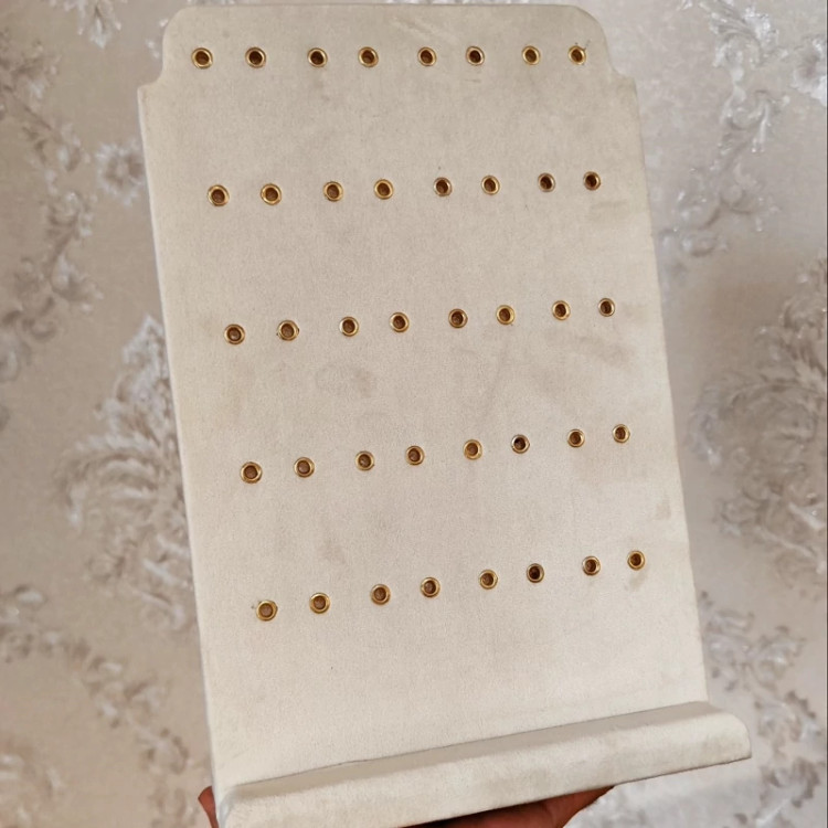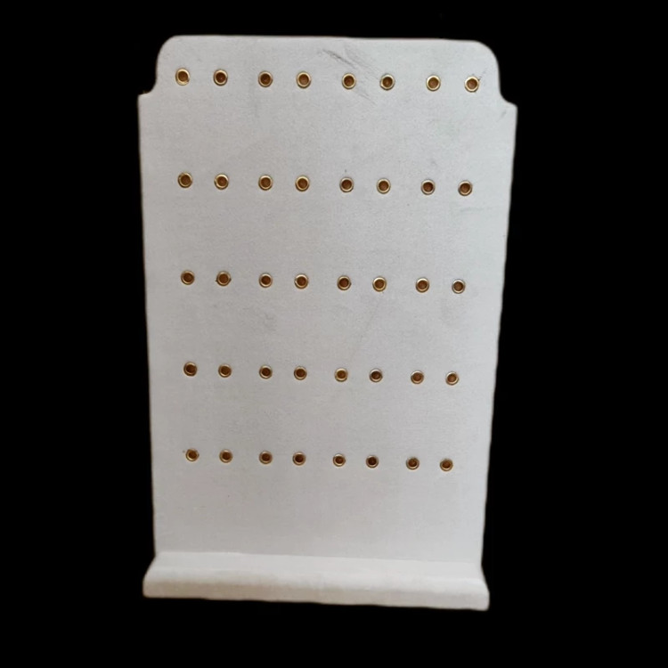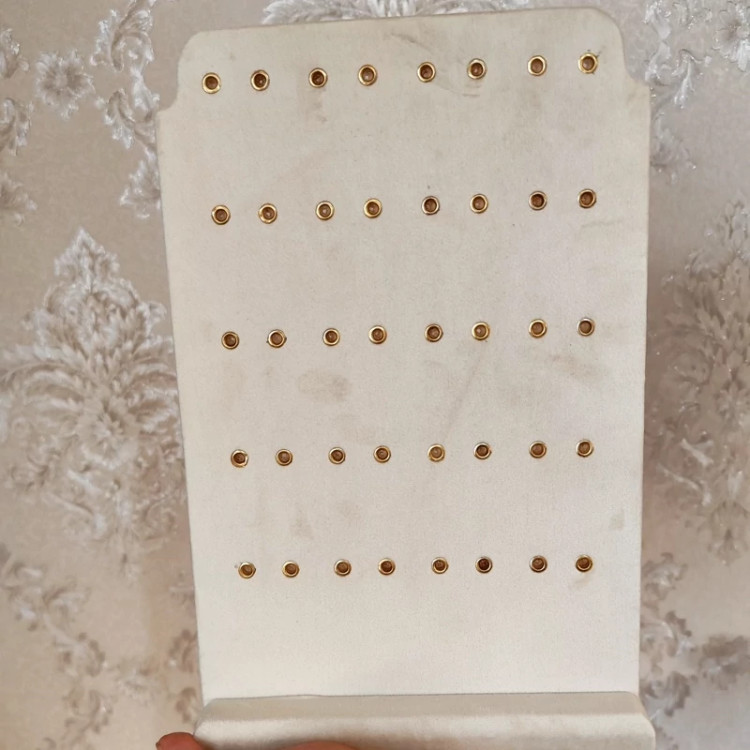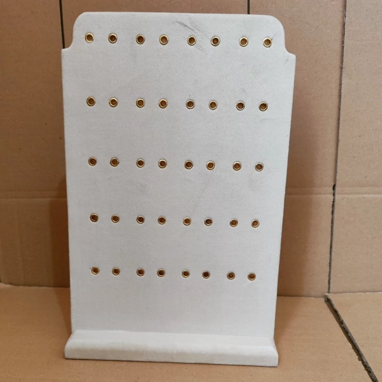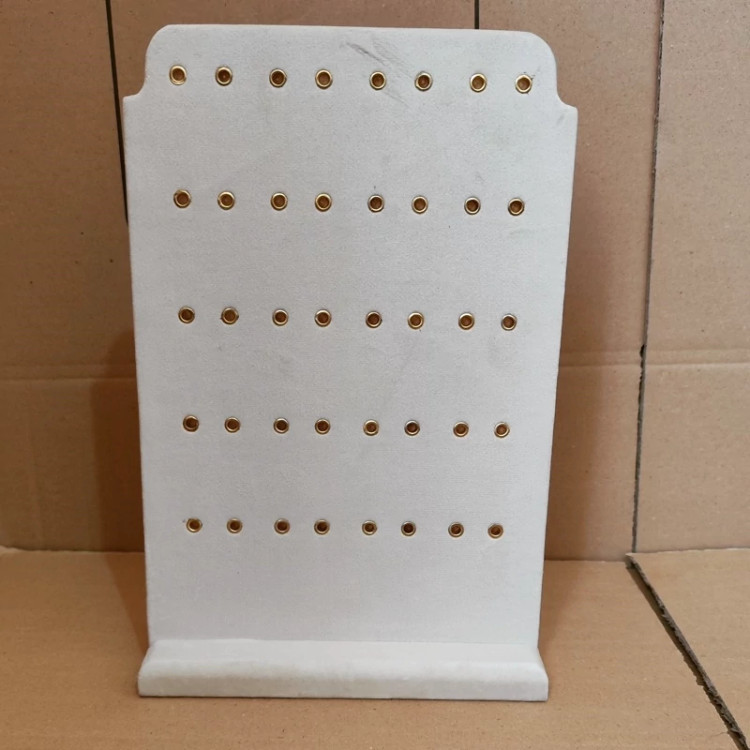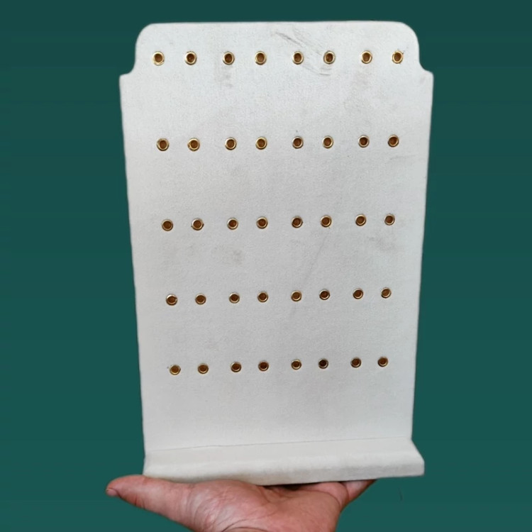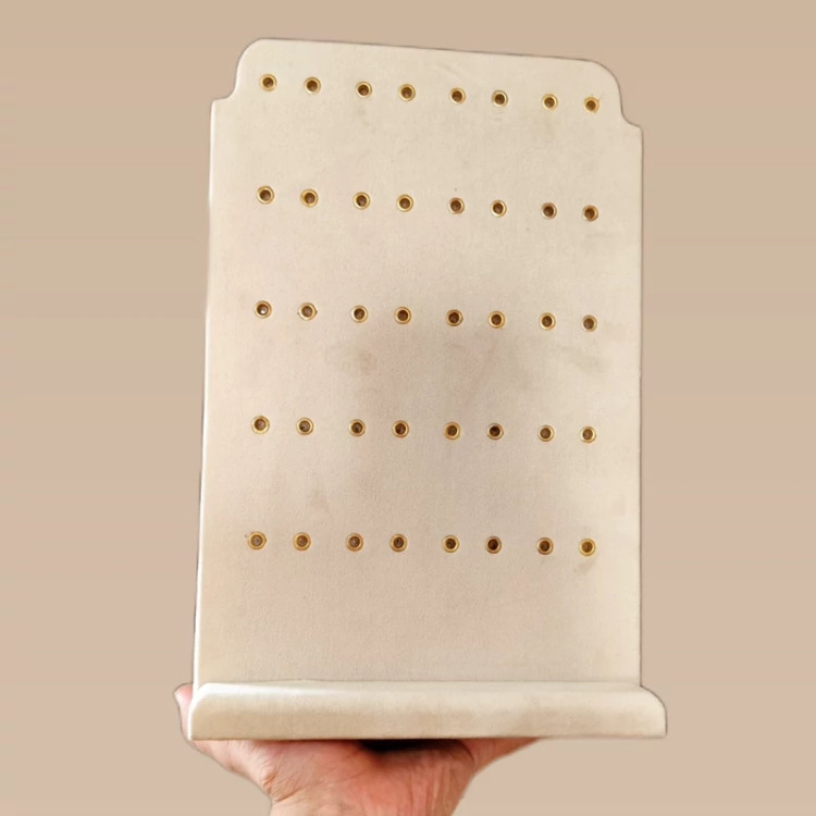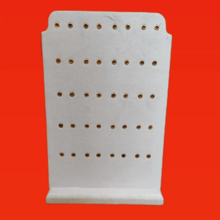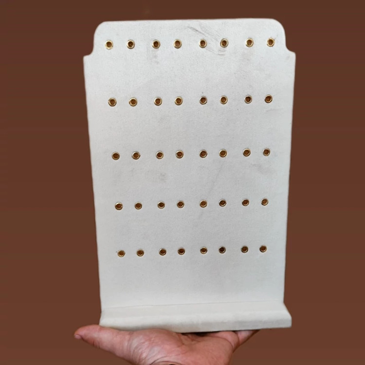 جنس این استند از روکش مخمل هست این استند از 5 ردیف تشکیل شده که هر ردیف آن 4 جفت گوشواره با فاصله های منظم قرار گرفته اند و در مجموع 20 جفت گوشواره قابل گذاشتن در این استند هست
