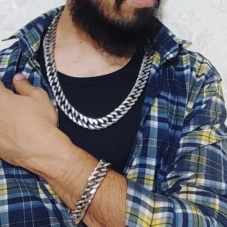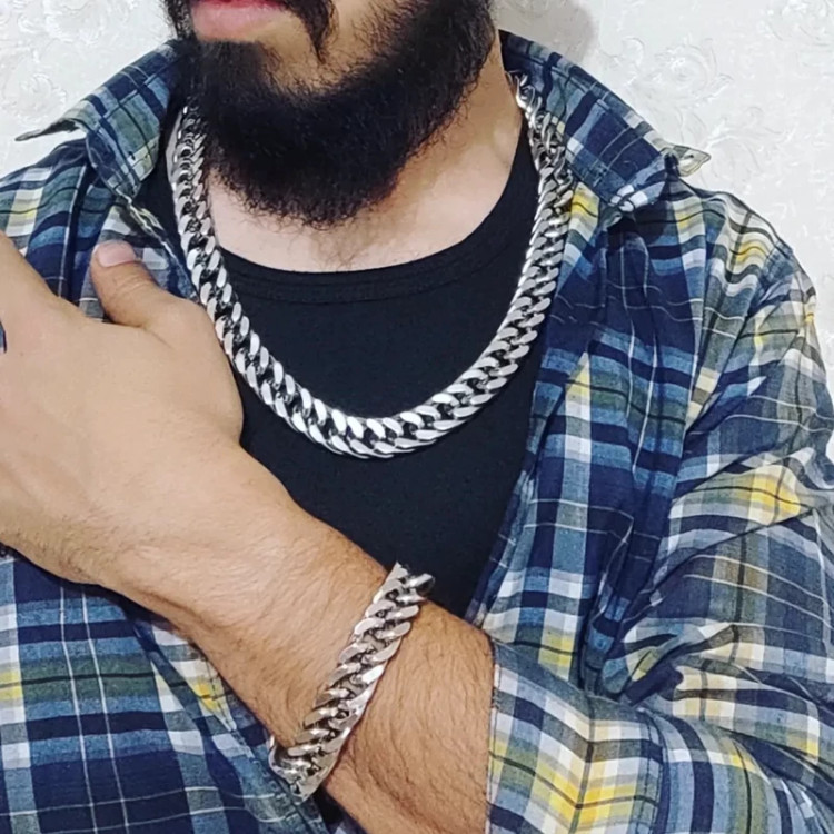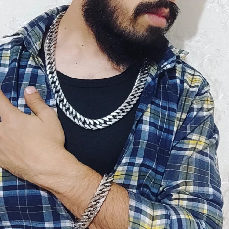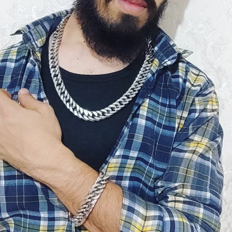 ♥ست دستبند و گردنبند کارتیر مردانه نقره ای بافت دوبل شارژ شد✨♥ ➖➖➖➖➖➖➖➖➖ 🎀🎀مشخصات 🎀🎀 ✔️✔️ سایز بندی ✔️✔️ جنس این کار استیل 316 است و رنگـ ثابت می باشد کارتیر این کار از ضخیم ترین نوع بافت بازار می باشد که ضخامت ان 15 میل است و بافت دوبل ان باعث شده طرفداران زیادی رو مجذوب خود کند طول دستبند هم 20 ثانت می باشد قابل سایز بندی می باشد و طول گردنبند 60 ثانت می باشد اگه دنبال یک کار با بافت خیلی ضخیم هستین و و وزنش سنگین باشه این کارو از دست ندین ✨ 🎀🎀رنگ بندی🎀🎀 نقره ای 😍 ➖➖➖➖➖➖➖➖