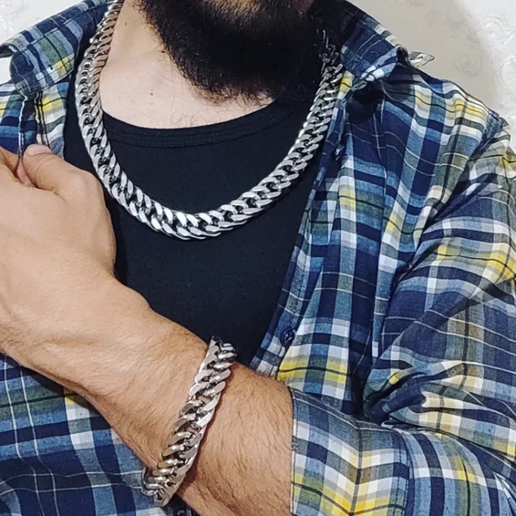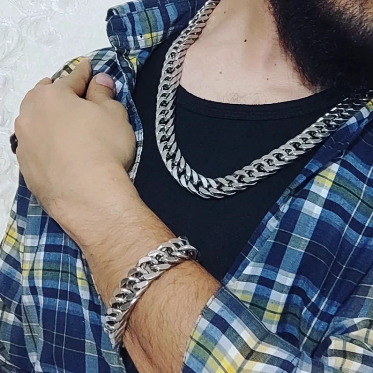 ست دستبند و گردنبند استیل 15میل مردانه (هدیه روز مرد)