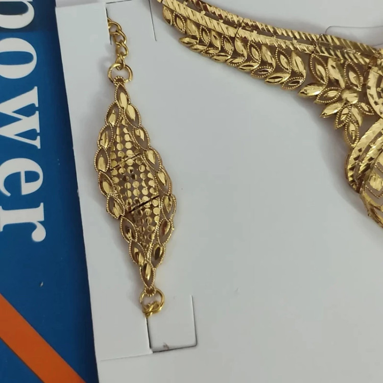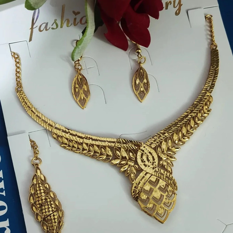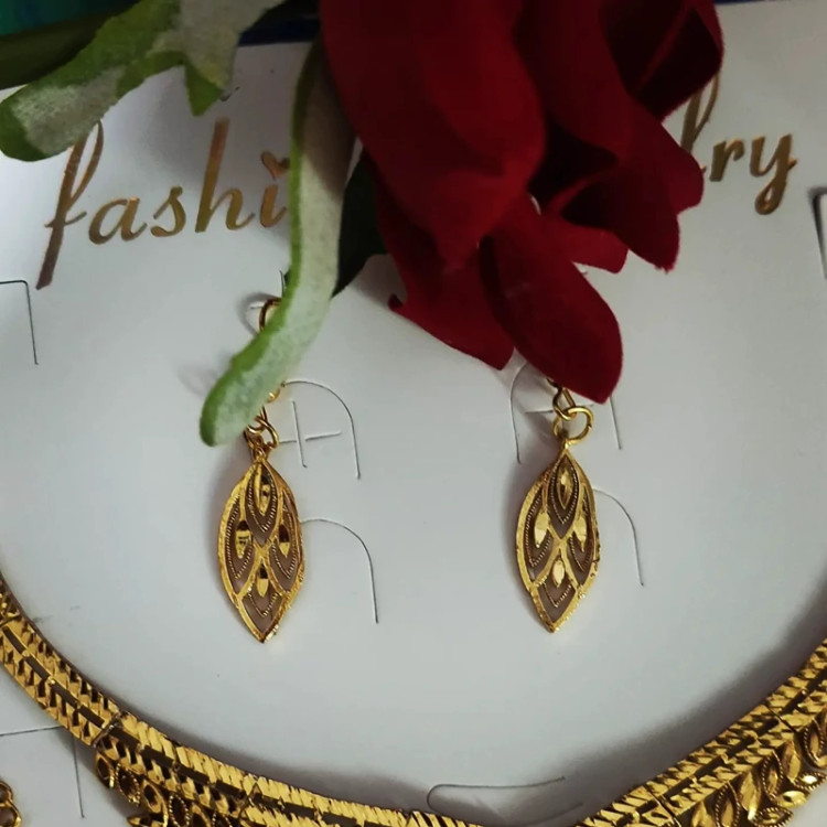 سرویس گندمی شامل سه تیکه گوشواره و گردنبند و دستبند جنس برنج ابکاری طلا با خود طلا مو نمیزنه