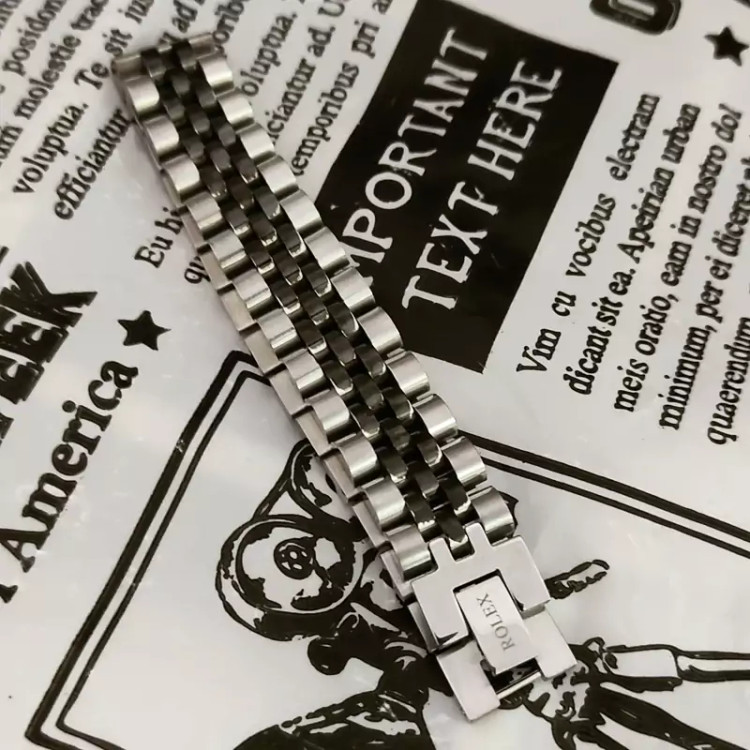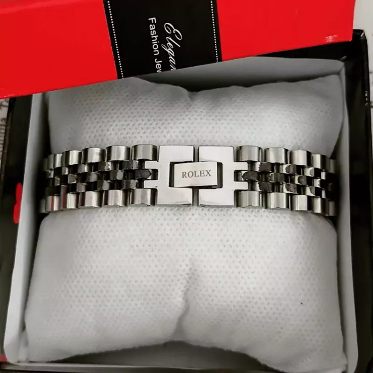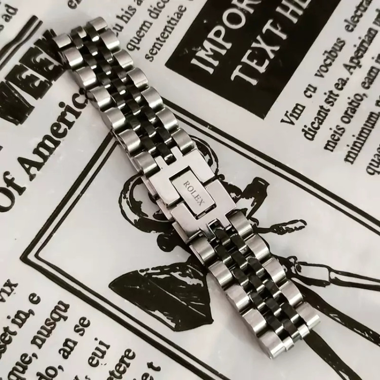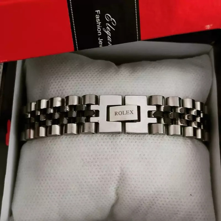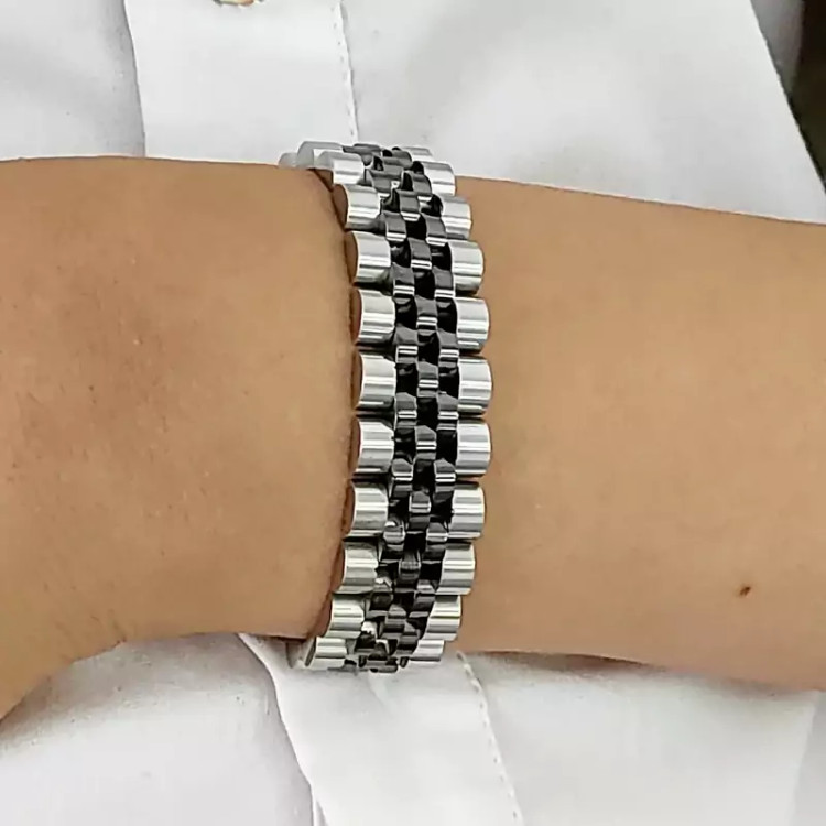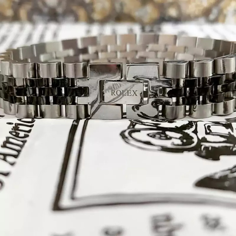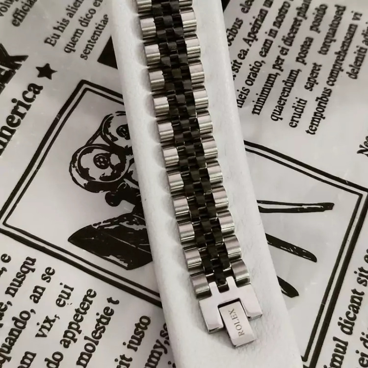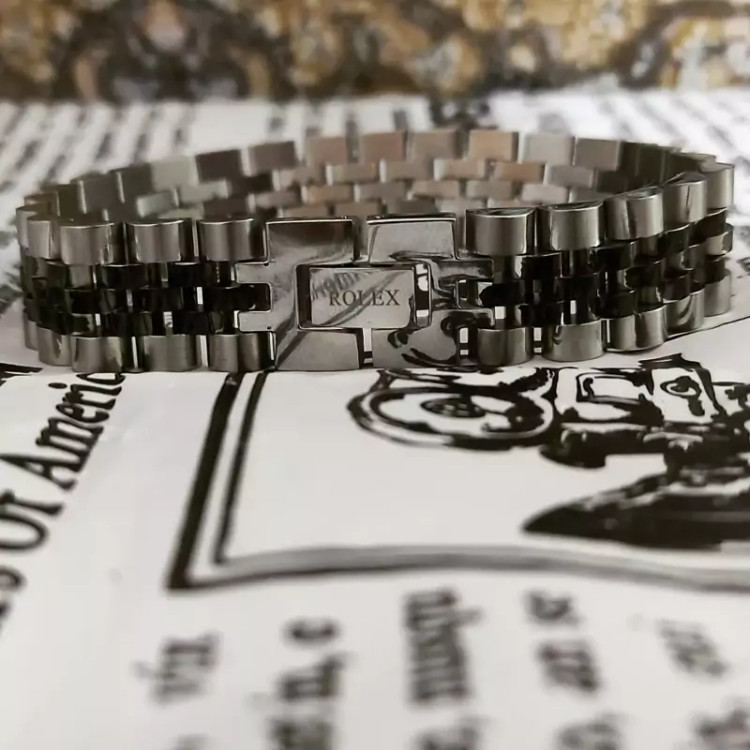 دستبند رولکس استیل نقره ای مشکی پهن