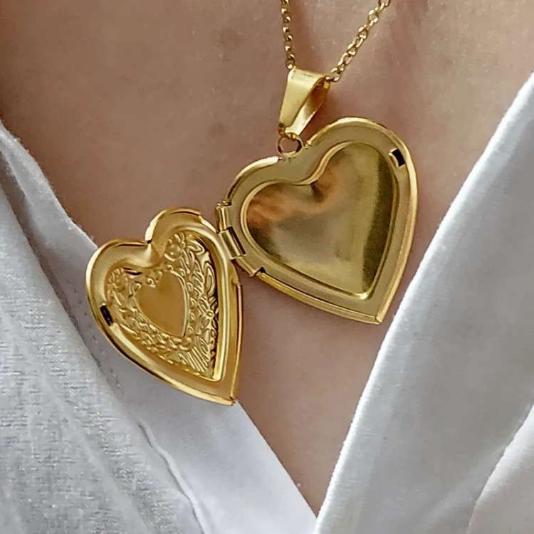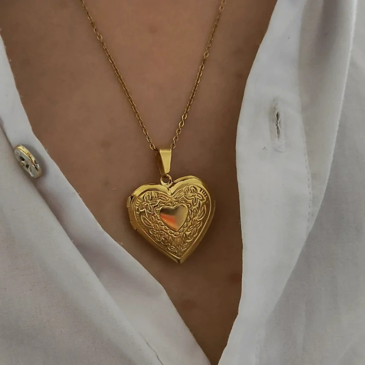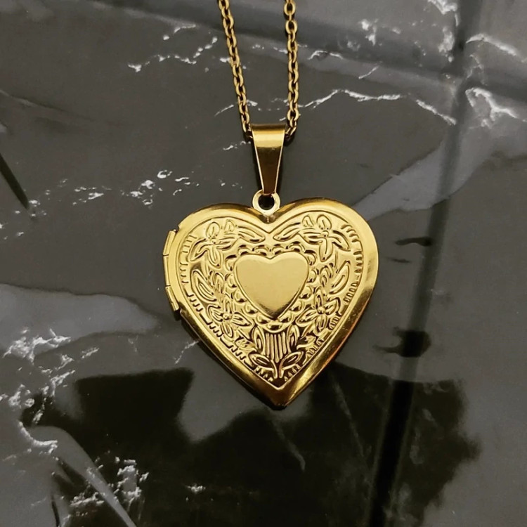 گردنبند قاب عکسی قلبی طلایی