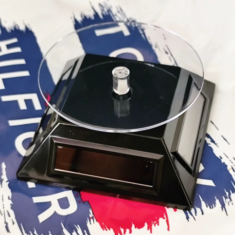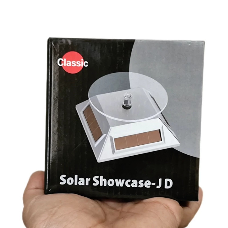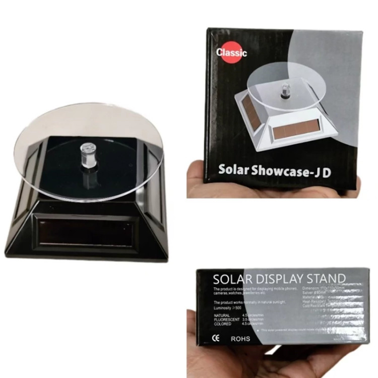 استند گردان نوری ویترینی با نور خورشید و نور ویترین و باطری عمل می کند چهارطرفه استند نوری المان های خورشیدی قراره داره تا نور محیط رو دریافت کنه تا گردان شروع به چرخش کند مناسب برای جواهرات ،ساعت و سایر اکسسوری ها 😊